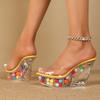 Třpytivé květinové podpatky 10CM Klínkové sandály Dámské křišťálové spodky Žabky Noční klub Tanec