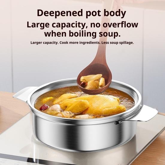 Premium Stainless Steel Construction: Crafted from high-quality, rust-resistant 201 stainless steel, this pot guarantees durability and even heat distribution. The PFOA-free material promotes safe cooking without harmful chemical. Its sturdy build withstands daily use while maintaining a sleek, polished appearance that complements any kitchen style.