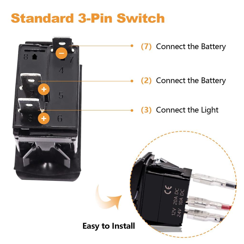 standard 3-pin switch, can be used to control LED light bars, headlights, taillights, off-road vehicle lights, Fog lights, LED work lights, etc.