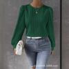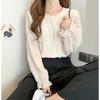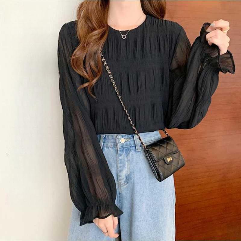 2026 Spring and Autumn New Pleated Chiffon Blouse, Loose and Versatile, Long Sleeve Women's Casual Round Neck Top