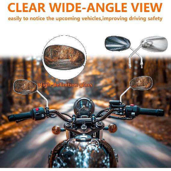 Universal 10mm Chrome Rearview Mirrors Oval 360 Degree Adjustable Side Mirrors Fit Street Bike Cruiser Touring Chopper Scooter GY6, for Honda