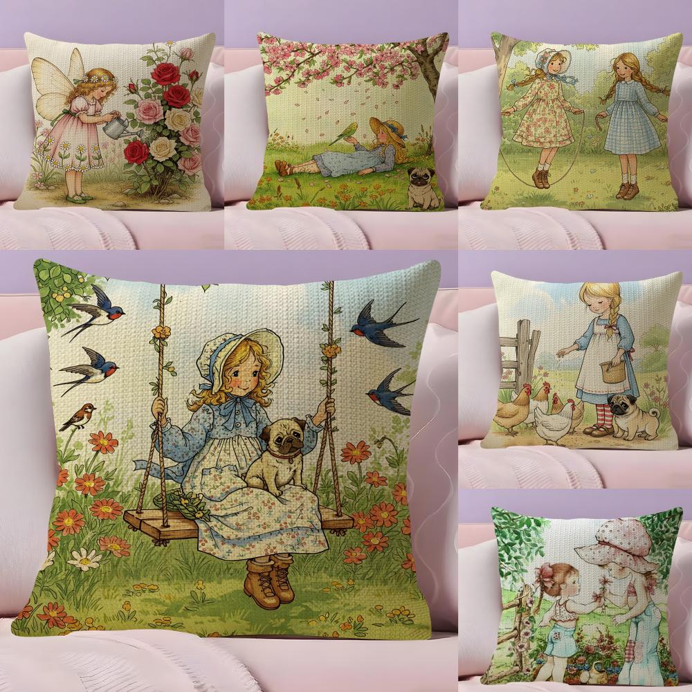 Art Sarah Kay Swing Girl Cushion Cover Natural Linen Pillow Case DoubleSided Print Decorative Sofa Pillowcase Home Decor Gift