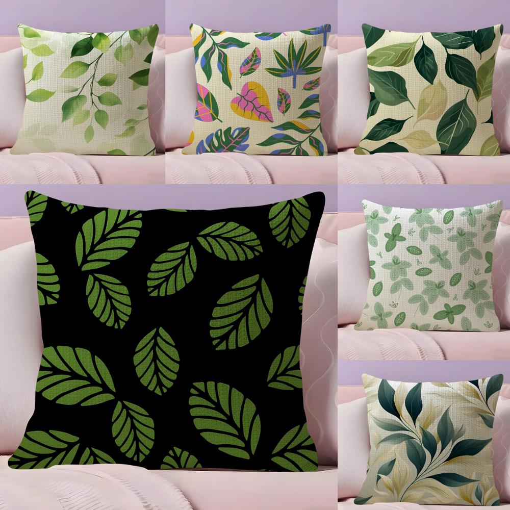 Leaves INS Cushion Cover Natural Linen Pillow Case DoubleSided Print Decorative Sofa Pillowcase Home Decor Gift