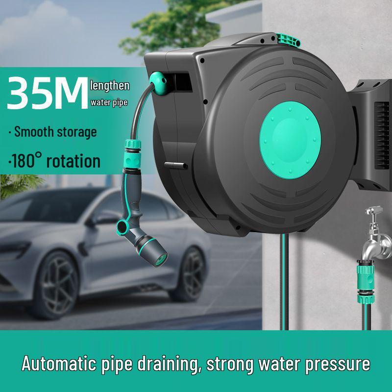 Telescopic Car Wash & Garden Hose Reel with High-Pressure Water Gun and Automatic Retractable Storage