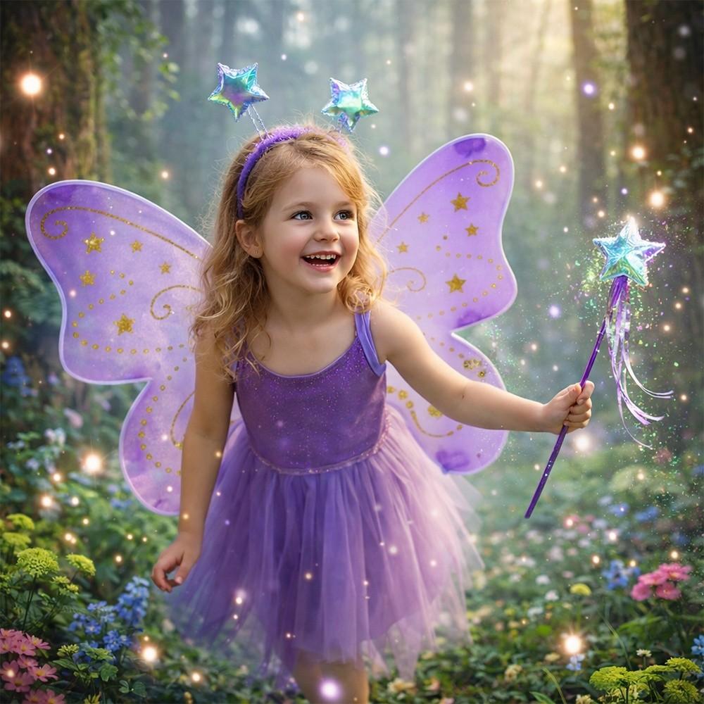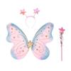 3Pcs/Set Sparkling Butterfly Wings Princess Hair Hoop Fairy Wand Angel Wings Colorful Dress Up Wings for Girl Dressing Up