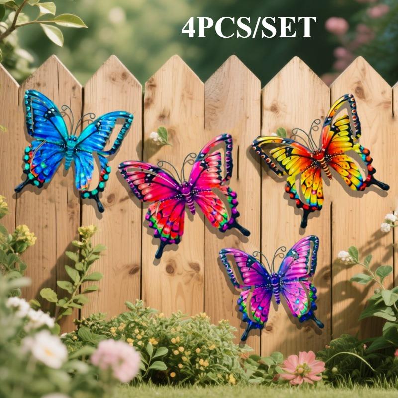 3D Iron Butterfly Wall Art, Vintage Metal Garden Wall Decor Hand-Painted Outdoor Hanging Ornament for Patio Yard Home-Rustproof