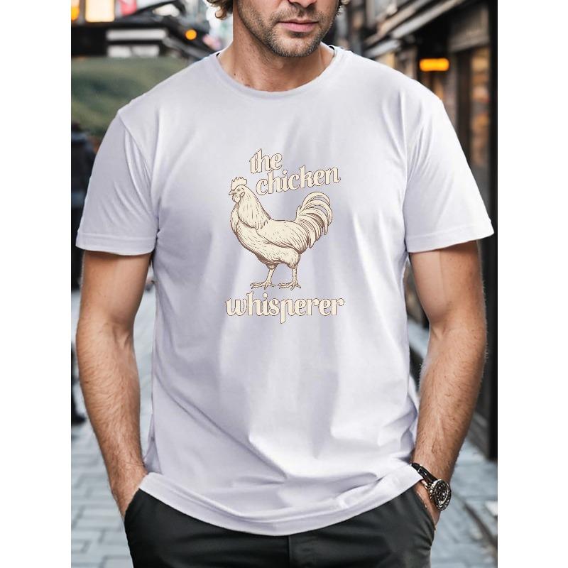 Plus Size Men's Chicken Print Creative Top, Casual Short Sleeve Crew Neck T-shirt, Men's Clothing For Summer Outdoor