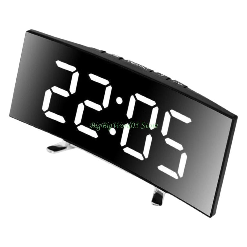 24TE Intelligent Mirror Alarm Clock Quiet Operate Curved LED Screen Temperature Monitor Night lighting USB Battery Power