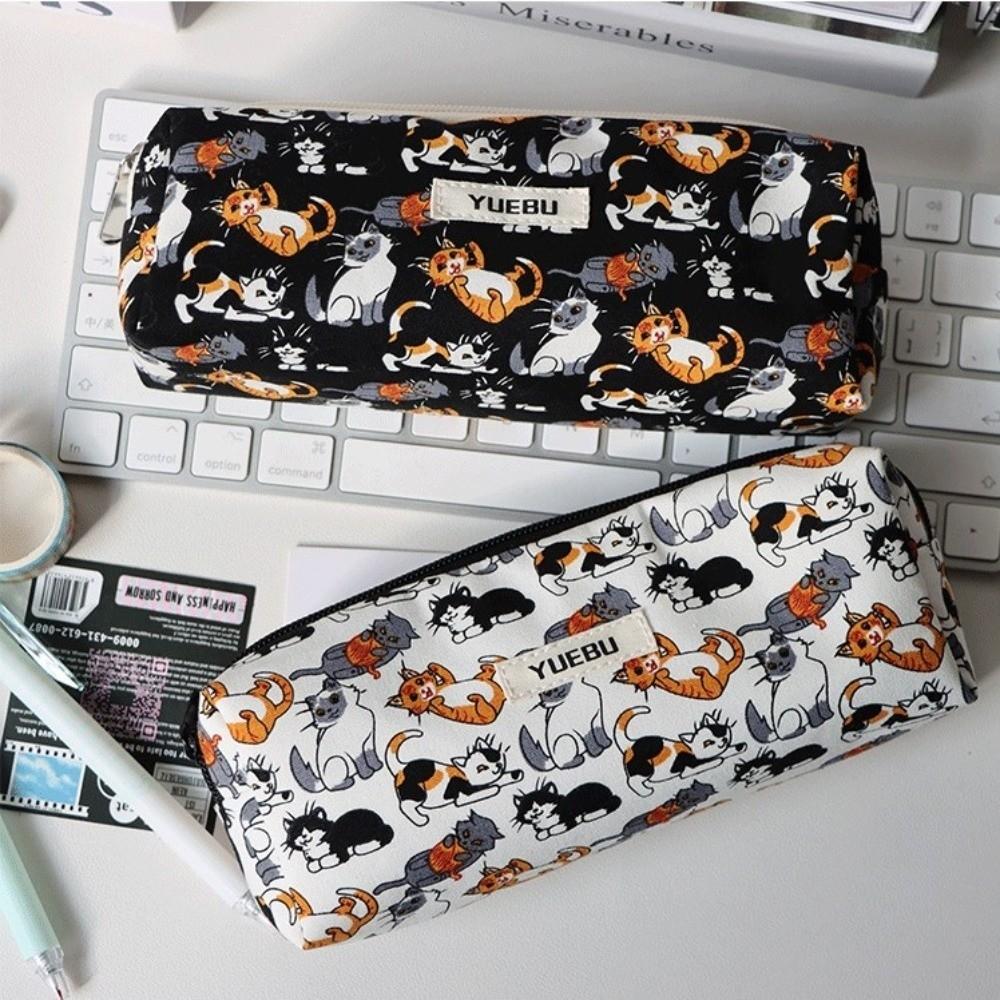 Large Capacity Stationery Box with Zipper Kitten Pencil Pouch Pencil Case Back-To-School Supplies