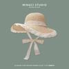 Hepburn wind flat top sunscreen straw hat women's summer big brim sunshade bucket hat seaside vacation beach sun hat
