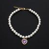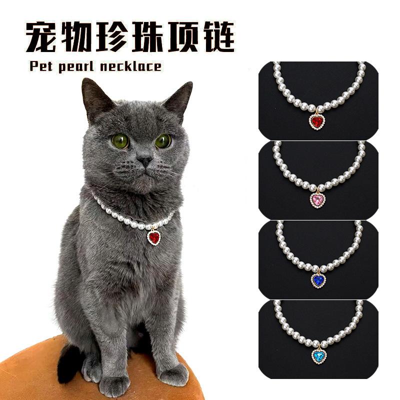 Fashion cat and dog pet pearl necklace accessory colorful love diamond pendant cat cat dog neck chain cute
