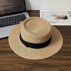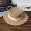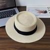 Straw hat seaside beach summer sun hat bow flat top hat sun hat rough edge vacation shade sun protection