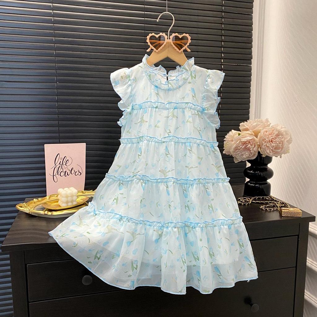 This enchanting summer dress for girls features a vibrant blue hue, perfect for warm, sunny days. Designed in a Korean chic style, the dress showcases a sleeveless silhouette that ensures comfort and ease of movement. The fairy skirt design adds an element of whimsy and elegance, making it an ideal choice for both casual outings and special occasions. Crafted from lightweight, breathable materials, this dress combines fashion and function, making it a delightful addition to any young girl's wardrobe.