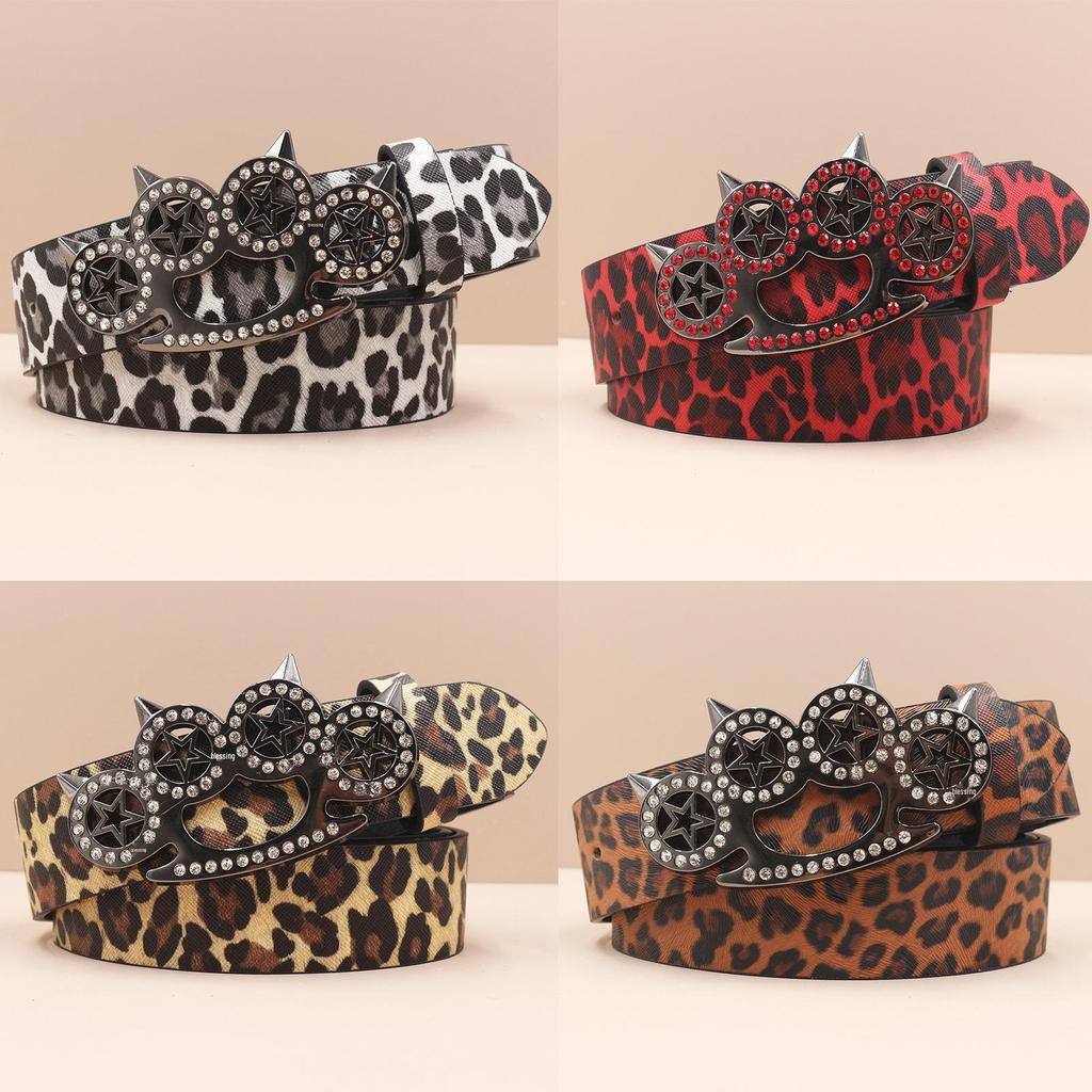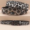 Y2K Leopard Print Rhinestone Tiger Claw Punk Women's Leather Belt