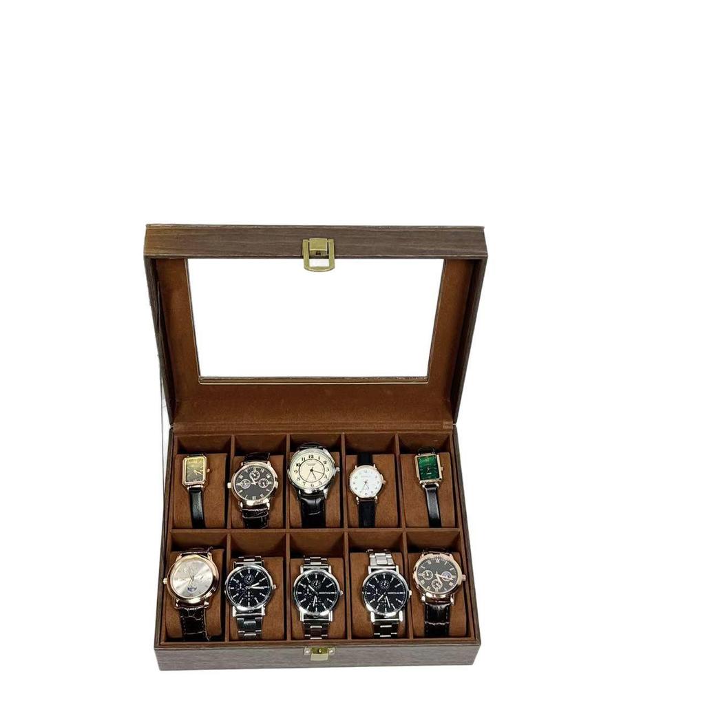 10-Bit Wood Grain Leather Watch Box with Dustproof Glass Cover