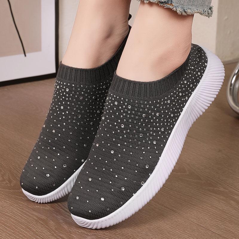 Plus Size Rhinestone Stretch Sock Women's Flyknit Casual Shoes - Lightweight & Breathable MD Sole