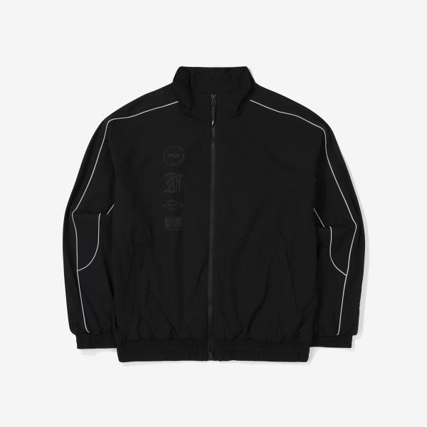 The FILA Reflective Windbreaker is a women's hiking jacket suitable for various outdoor activities, featuring reflective details. This product is made of a nylon and polyester blend, making it lightweight yet durable. It is available in black.