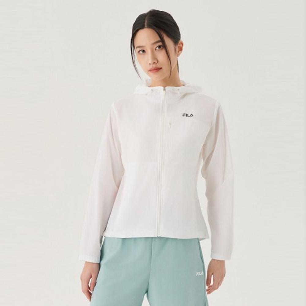 The FILA Lightweight Stretch Windbreaker Basic is designed with lightweight materials, providing a comfortable wearing experience. The outer fabric consists of 91% nylon and 9% polyurethane, showcasing excellent elasticity. Available in Beige, it is suitable for various outdoor activities.