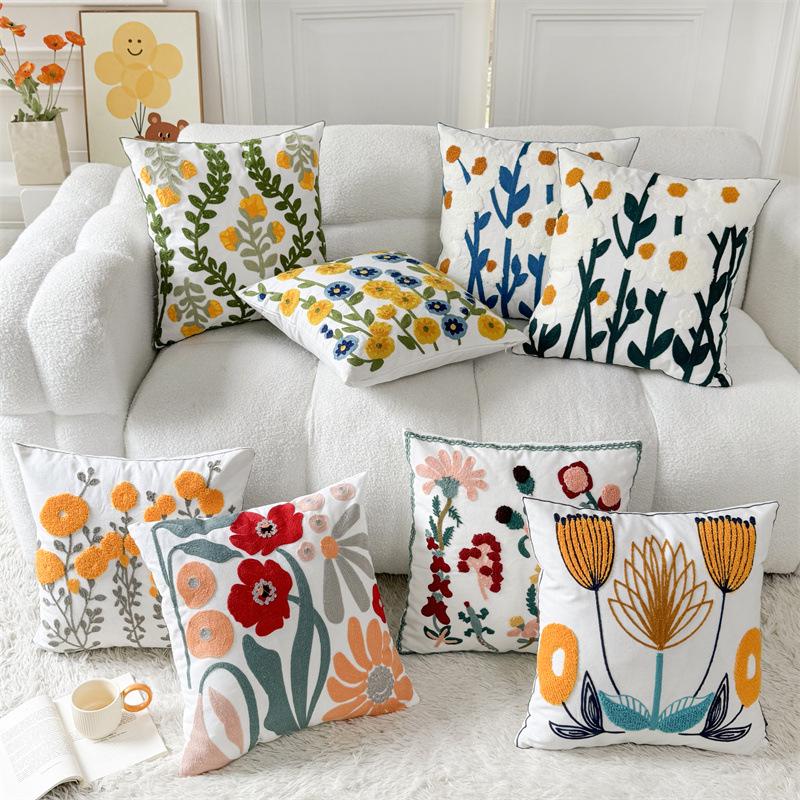 American Pastoral Floral Embroidery Canvas Cushion Cover - Cotton & Linen