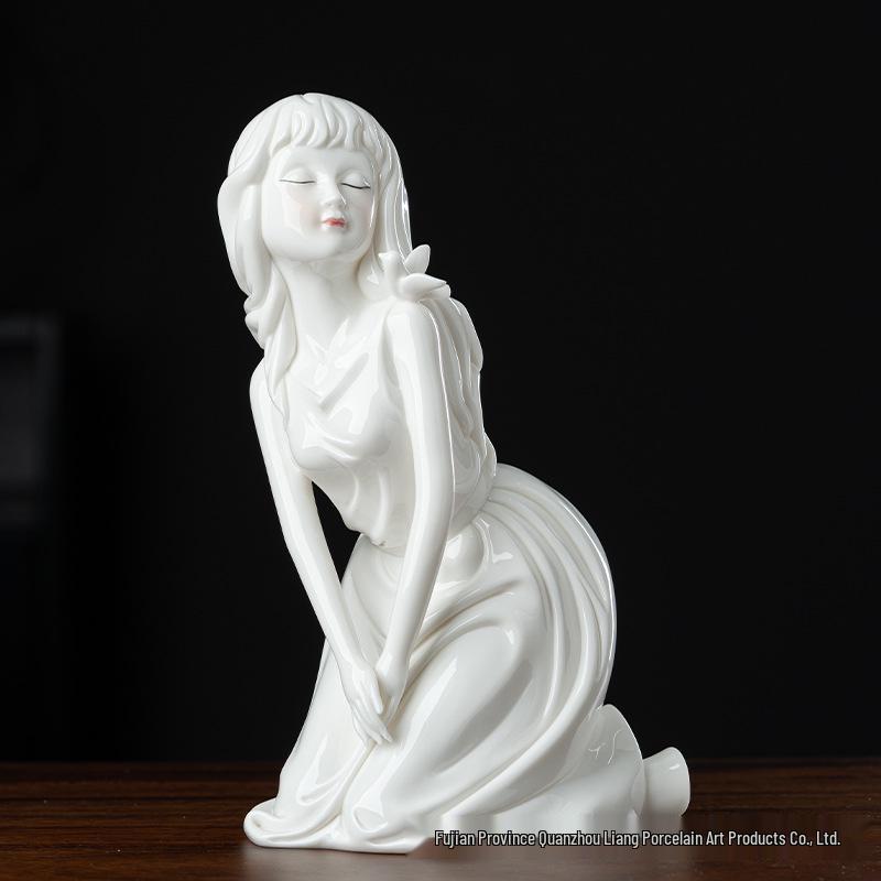 Chinese Classical White Porcelain Lady Figurine for Home Decor