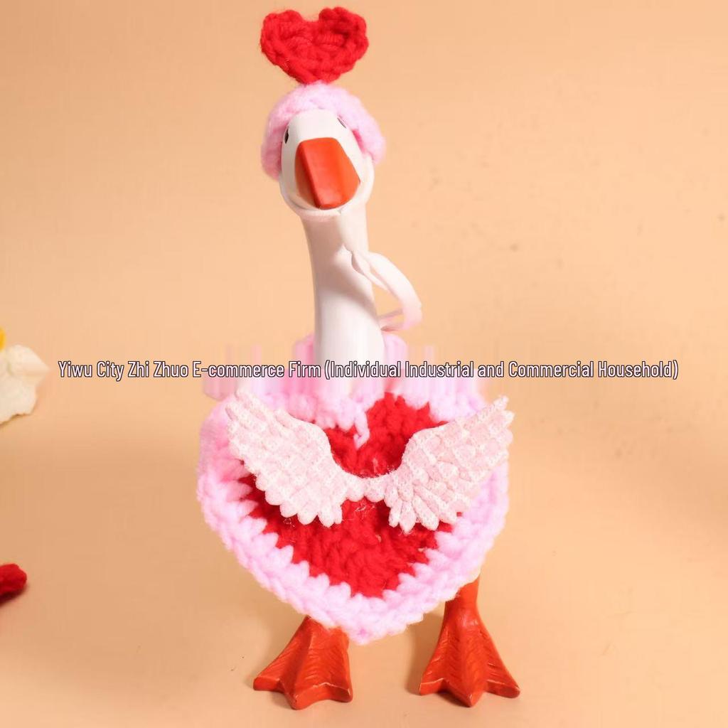 Valentine's Pearl Desktop Goose Set with Mini Knitted Hat & Adjustable Wings Clothing
