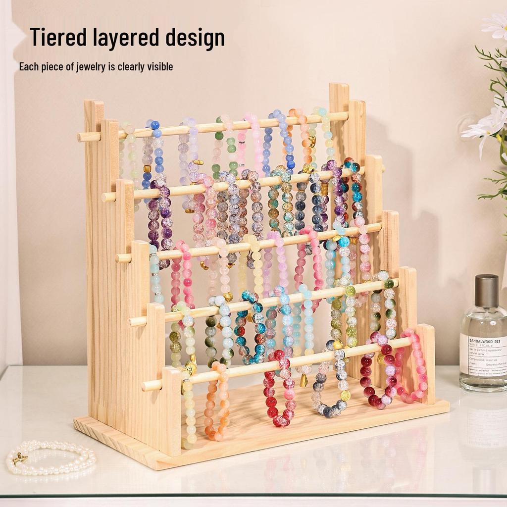 Solid Wood Bracelet Display Stand for Buddhist Beads, Jewelry, Hair Ties, and Headbands
