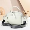 This women's crossbody shoulder bag features a large capacity with dimensions of 9 inches in length, 7.5 inches in height, and 3.9 inches in width, crafted from durable PU leather with a textured, litchi pattern and metal studs. Its sleek, rectangular design includes a secure zip closure, internal zippered pocket, phone, and card slots, supporting daily organization. Ideal for everyday use and versatile fashion styles, it offers double shoulder straps for comfortable wear. Wipe clean with a damp cloth to maintain its appearance.