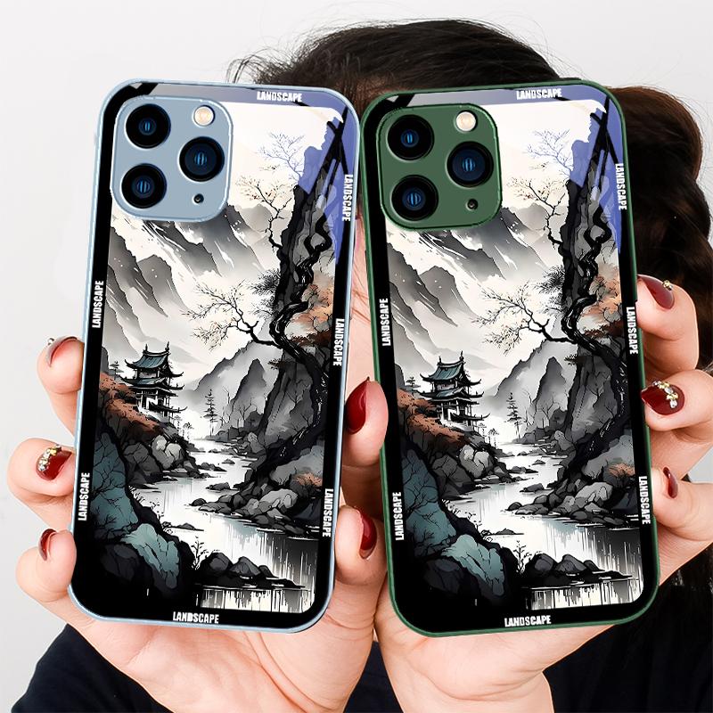 Chinese Landscape Painting For Iphone 16 Plus 15 14 13 12 Mini 11 Pro Max X XS XR 7 8 Plus 2022 Tempered Glass Phone Case