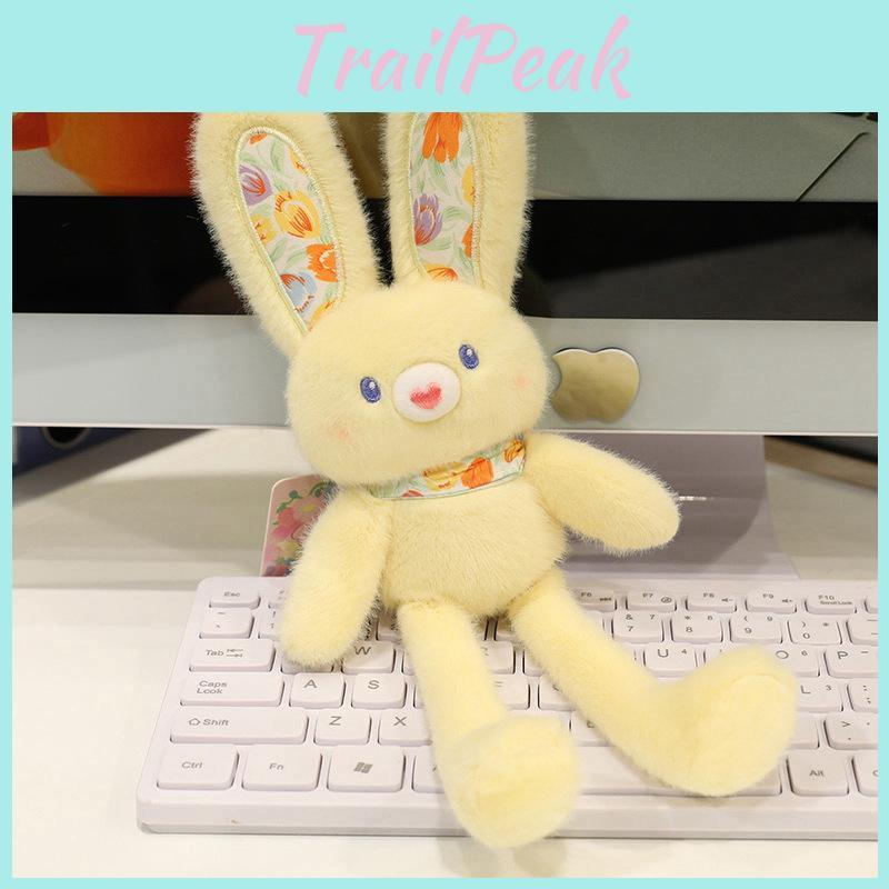 This lightweight bunny plush keyring features a soft, short-pile plush made of durable polyester and measures approximately 30 cm in length with an attached keychain. The adorable cartoon design depicts a pull-eared rabbit in vibrant dopamine yellow, purple, white, or pink, ideal for kids' collections or accessories. Perfect for attaching to bags, keys, or backpacks, it adds a playful touch to everyday items. Wipe clean with a damp cloth to maintain its softness and appearance.