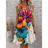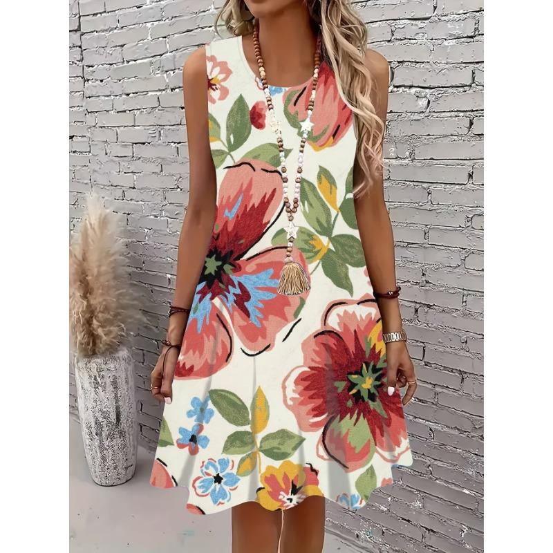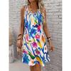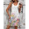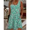 Floral Print Sleeveless Summer Dress for Women Casual Boho Style Mini Dress with Ruffle Hem And Round Neckline, Overseas Printing