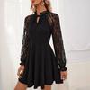 Spring Elegant Women Solid Color French Color Block Lace Tie Long Sleeve Dress Mature Style French Retro Patchwork Slim Sexy Elegant Women Maxi Dress