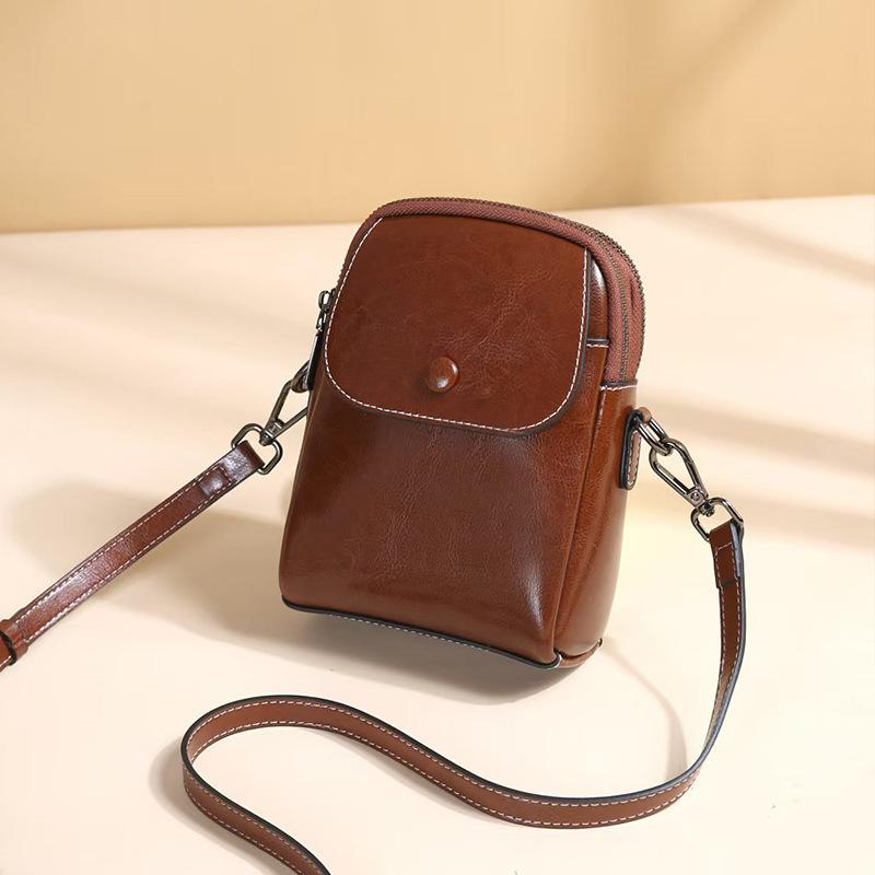 Leather small bag women's new spring and summer fashion vertical mobile phone bag cowhide multi-layer versatile shoulder messenger bag