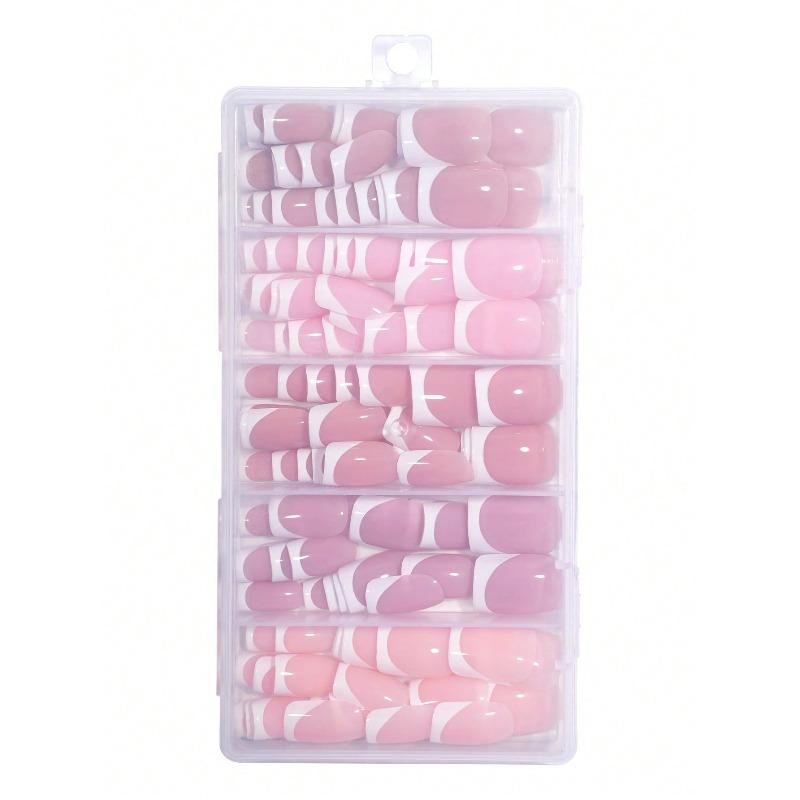 160pcs Short Square White French Fashion Design Full Cover Fake Nail Patch Pressed On Nail Art Supplies For Ladies Parties And Daily Wear Fake Nails