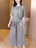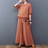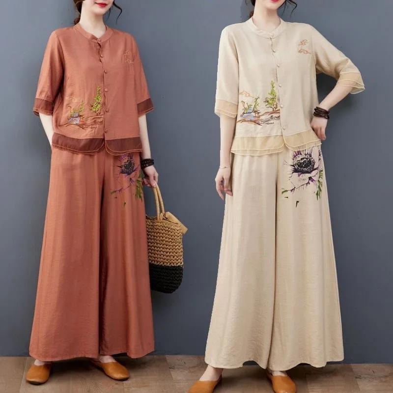 Fashionable Embroidered Cotton Linen Two-Piece Set with Wide Leg Pants for Middle-Aged And Elderly Women Summer Clothing