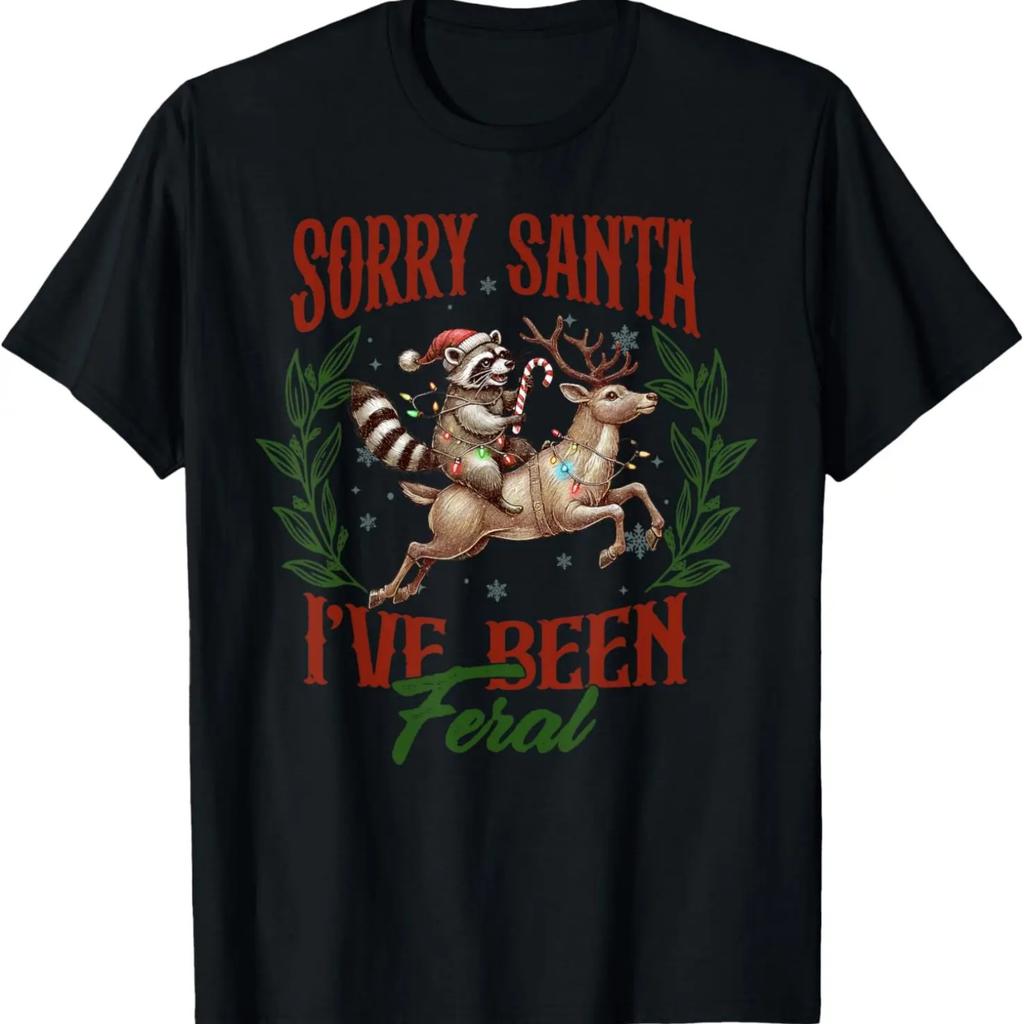 Funny Sorry Santa I've Been Feral Raccoon Christmas Animal T-Shirt