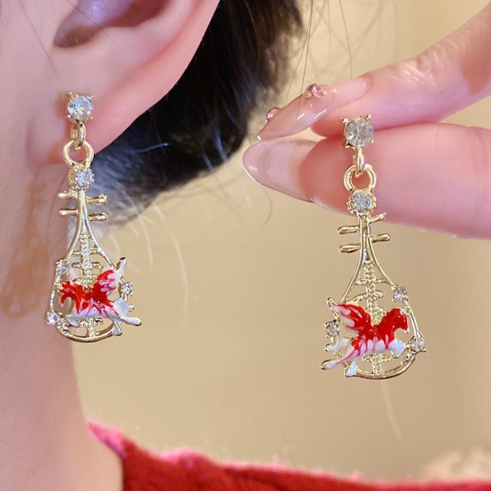 Fashion Jewelry Chinese Style Pony Earrings Rhinestone Drop Earrings Wedding