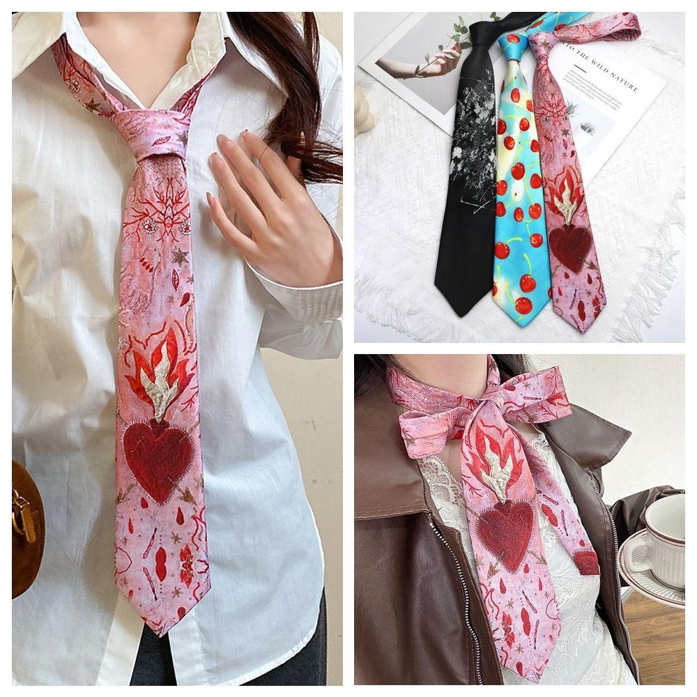 Heart Neck Tie Cherry Shirt Neckties Simple Y2K Neckties Men