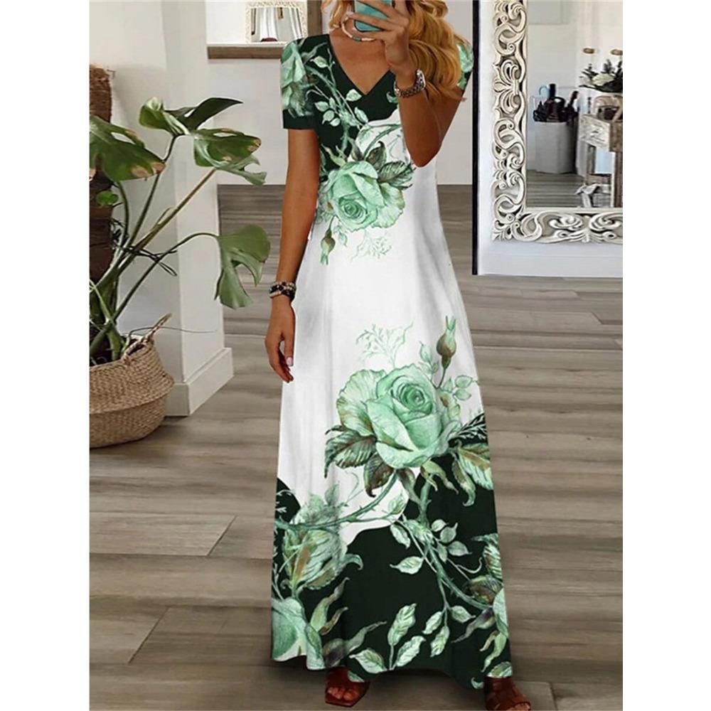 A stylish printed V-neck short-sleeve dress for women, featuring trendy design, suitable for casual summer wear