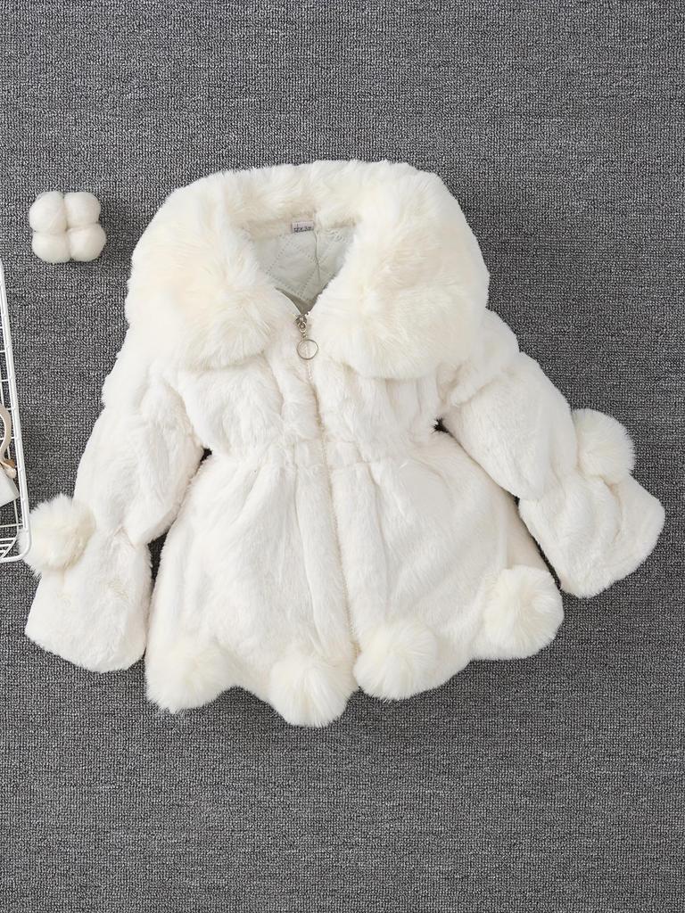 Embrace the cozy charm of the cooler seasons with this delightful sweater jacket, designed especially for girls. Crafted with a soft, faux fur texture, it promises warmth and comfort during autumn and winter. Adorned with playful pom-pom details, this jacket adds a touch of whimsy to any outfit. Perfect for layering, it combines style with functionality, making it an ideal choice for both casual outings and festive occasions.