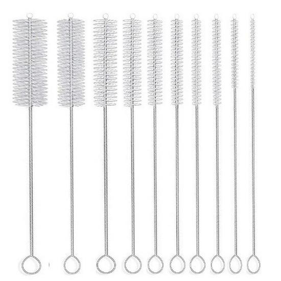 10-Piece Stainless Steel Straw & Cup Cleaning Brush Set with Long Handle