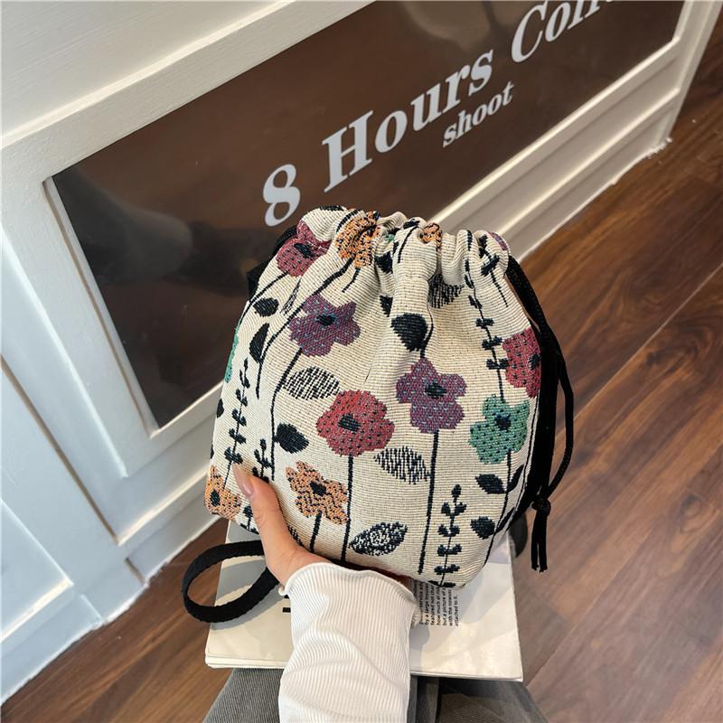 Casual Flowers Women Drawstring Shoulder Bags Lightweight Commuter Ladies Crossbody Bag Simple Girls Small Tote Handbags Clutch