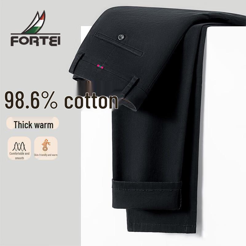 Futing Men's Warm Straight-Leg Business Casual Pants