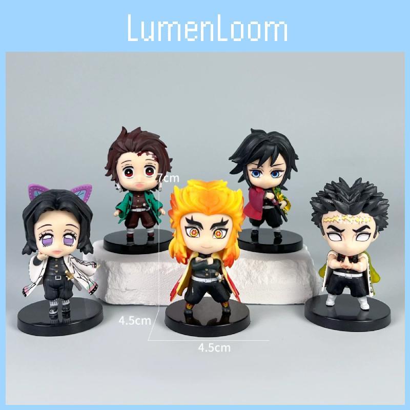 This PVC Demon Slayer figurine pack features detailed sculpting of anime characters from the popular series, designed for cosplay and display.crafted from durable PVC material. The set includes five assembled, poseable figures in a portable size, ideal for tabletop displays or cosplay accessories. Care involves wiping with a damp cloth to maintain detail and color.