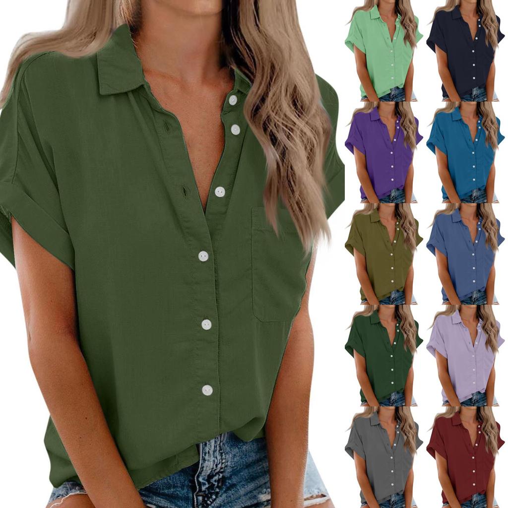 Dámská Módní Ležérní Kapsa Krátký Rukáv Límec Košile Top
