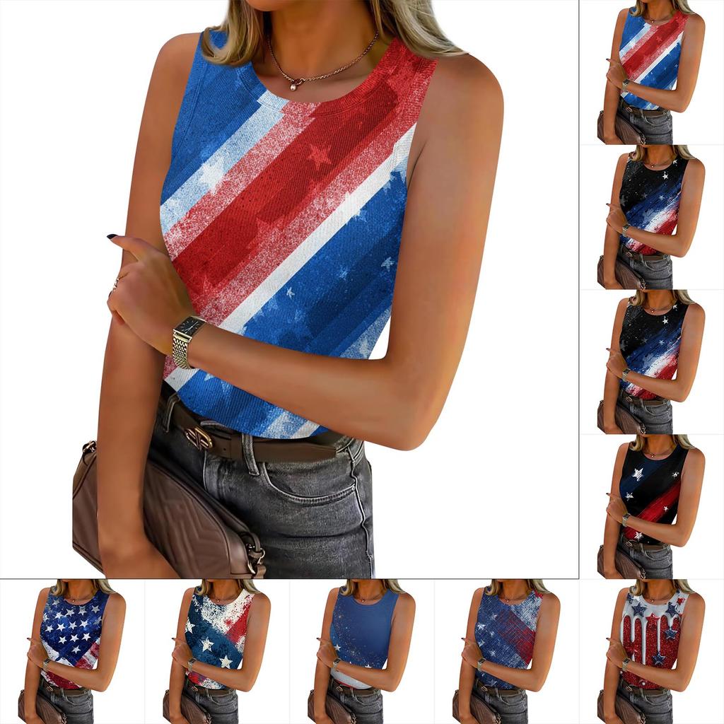 Women's Summer Fashionable Casual Independence Day Printed Round Neck Sleeveless Top Fitted Vest