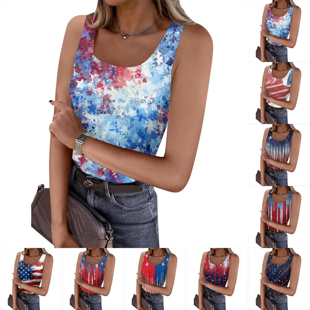 Women's Summer Fashionable Casual Independence Day Printed Round Neck Sleeveless Top Fitted Vest
