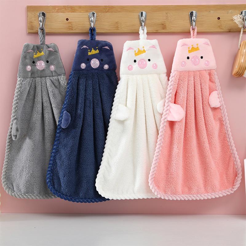 Cartoon Little Pig Coral Fleece Hand Towel - Cute, Absorbent, Ideal for Kids' Hand Wiping in Kitchen