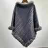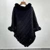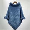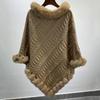 Plus Size Women's Knitted Pullover Shawl with Faux Rabbit Fur Collar - European & American Autumn/Winter Collection