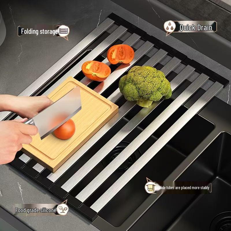 304 Stainless Steel Retractable Folding Kitchen Sink Dish Drainer Basket Rack