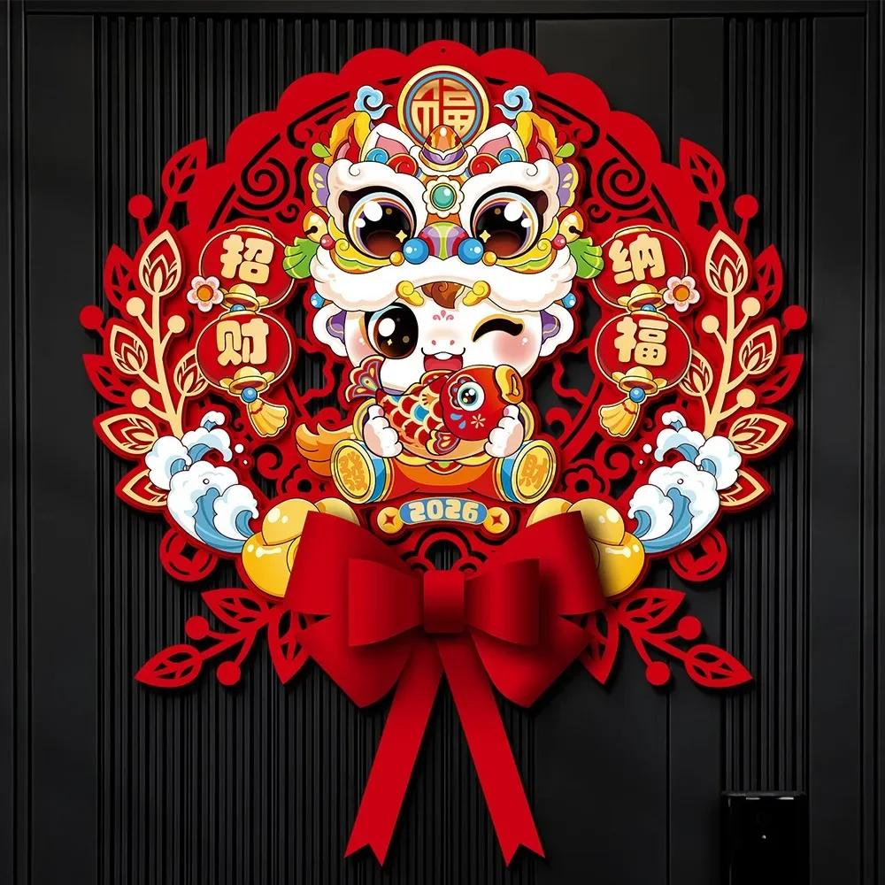 Chinese 2026 Horse Year Door Sticker Nonwovens Blessing Fu Character Sticker Cartoon Traditional New Year Wall Sticker